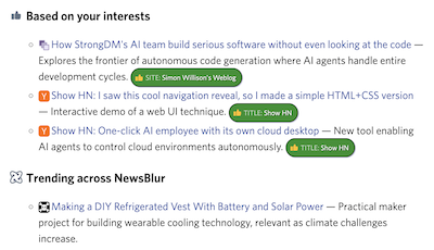 See the full comparisonNewsBlur gives you personal training instead of rules, built-in AI features, story clustering, and a fully open source codebase you can self-host.